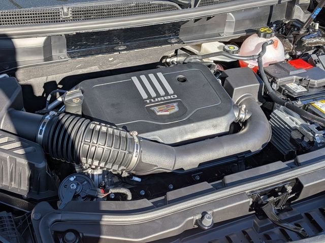 - Opens or closes when the system senses the key fob and the driver extends their foot under the left-hand side of the rear bumper over an image of the Cadillac Crest projected under the vehicle